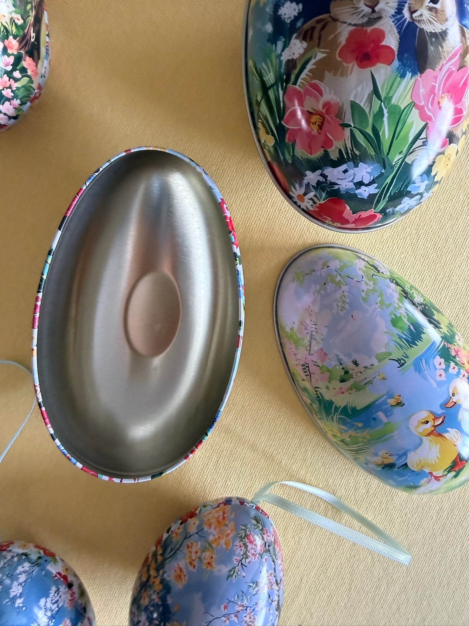 Påskeægget er fremstillet i metal og kan nemt skilles på midten, så det kan fyldes med lækkert påskeslik, små overraskelser eller personlige gaver.