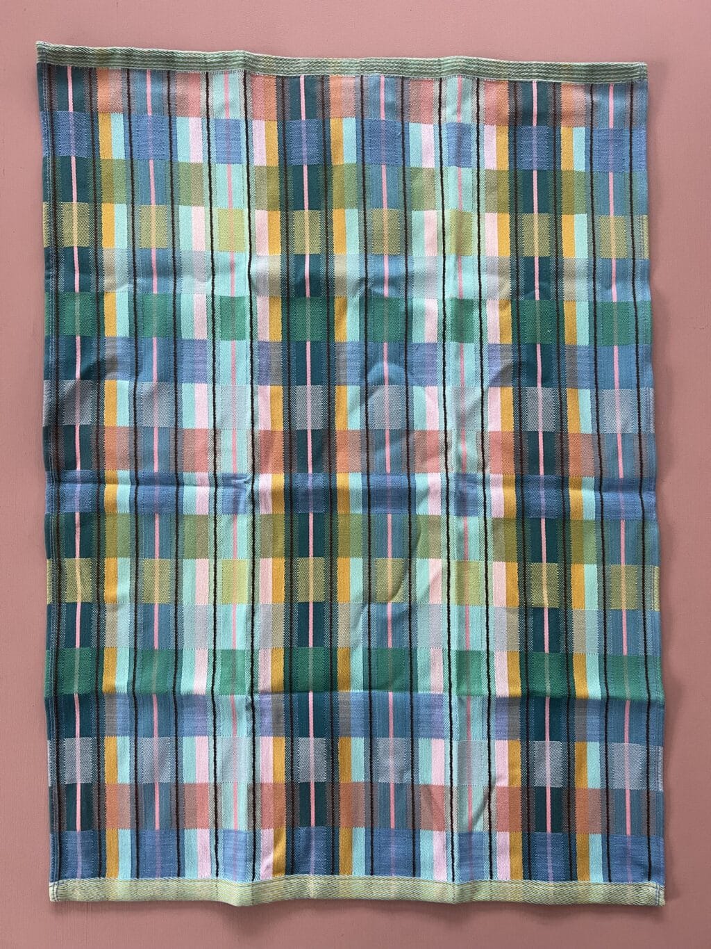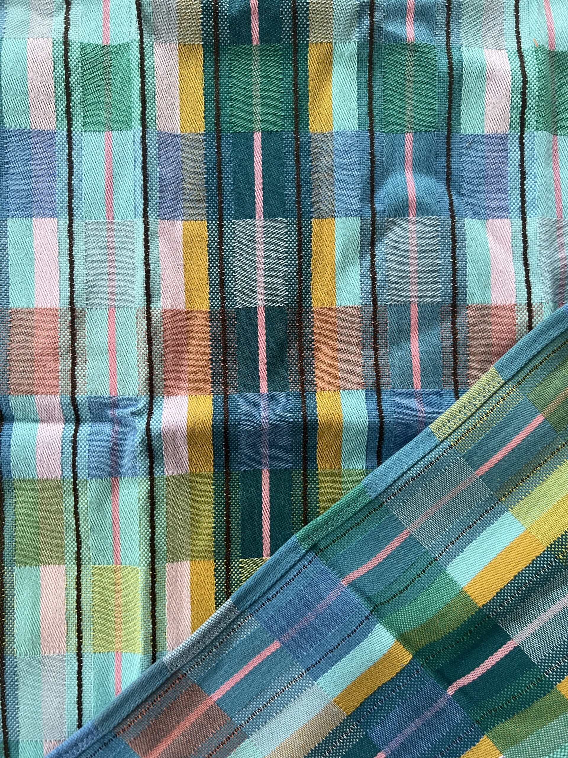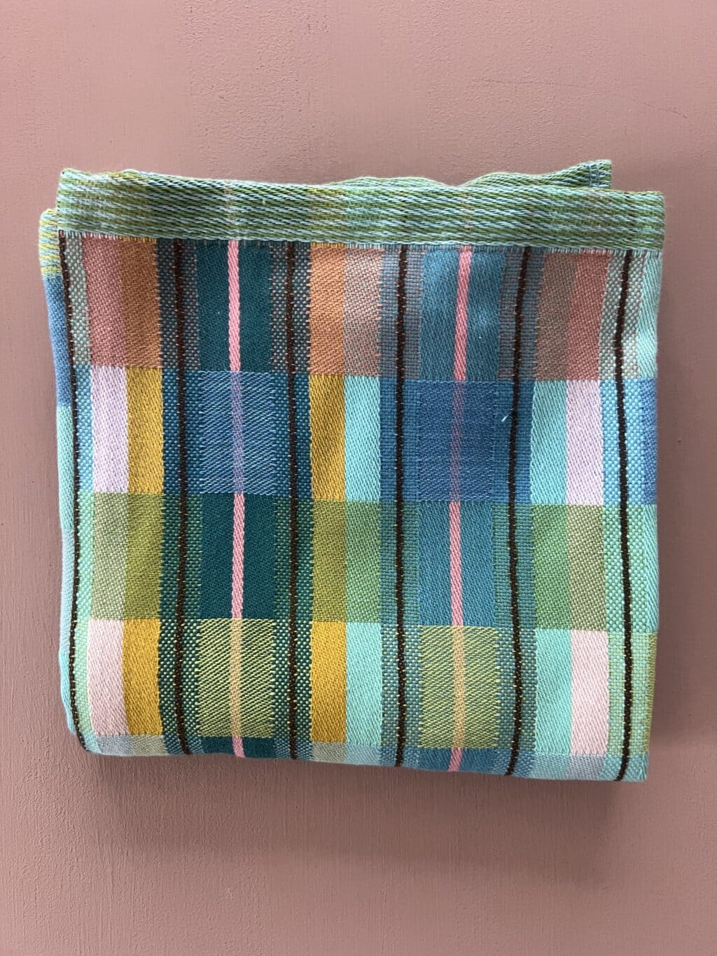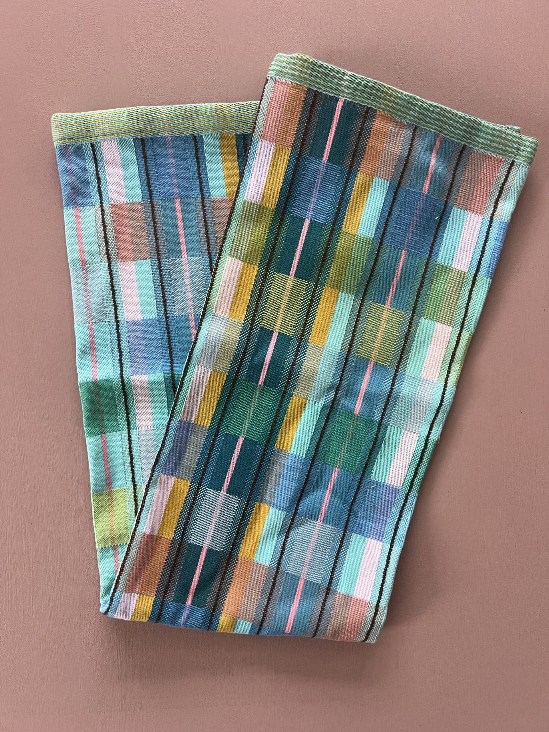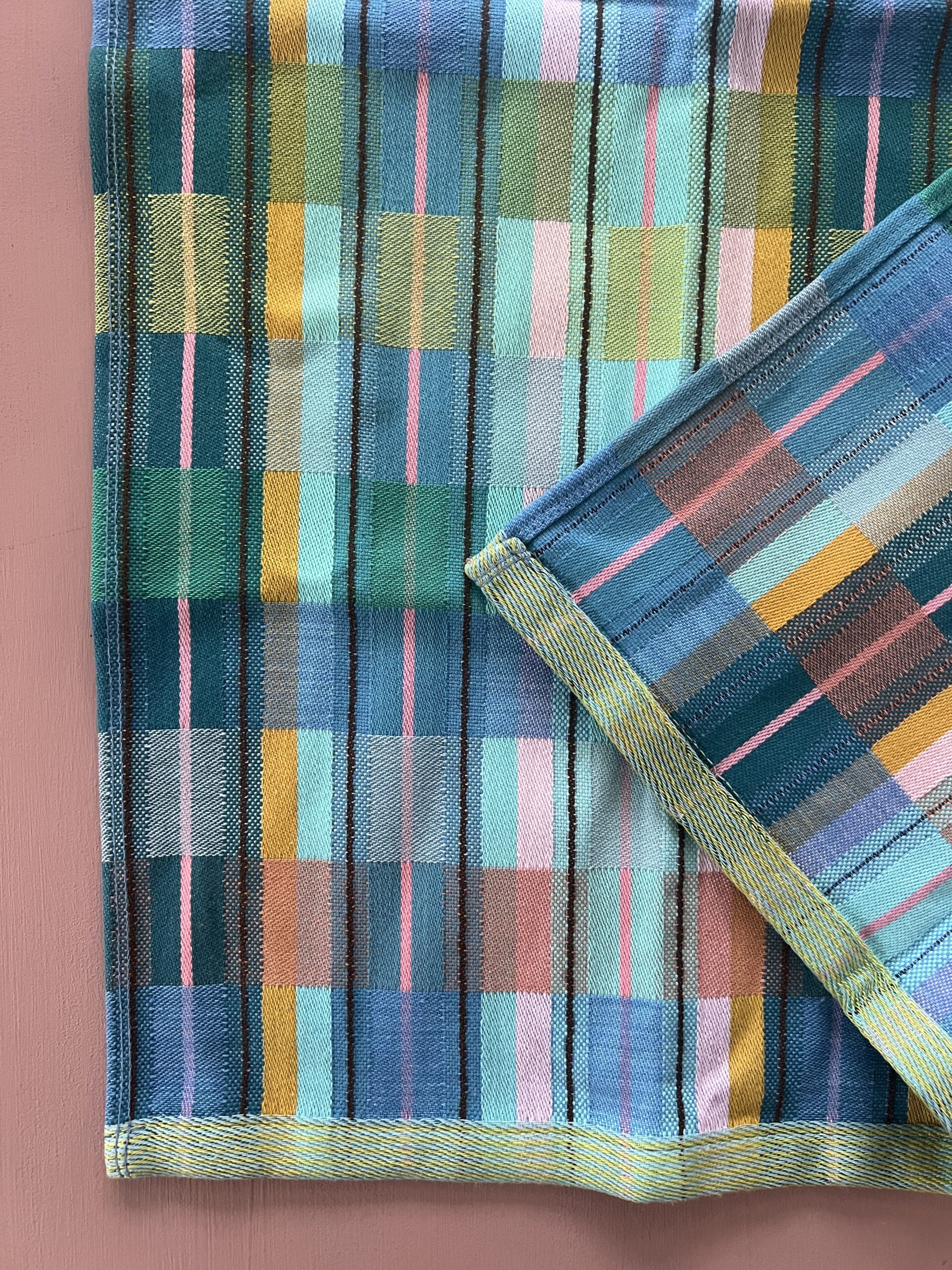 Viskestykket har et skønt ternet og stribet design, som dannes når de mange forskellige farvede tråde væves over hinanden – et design som er overraskende, harmonisk og helt specielt.