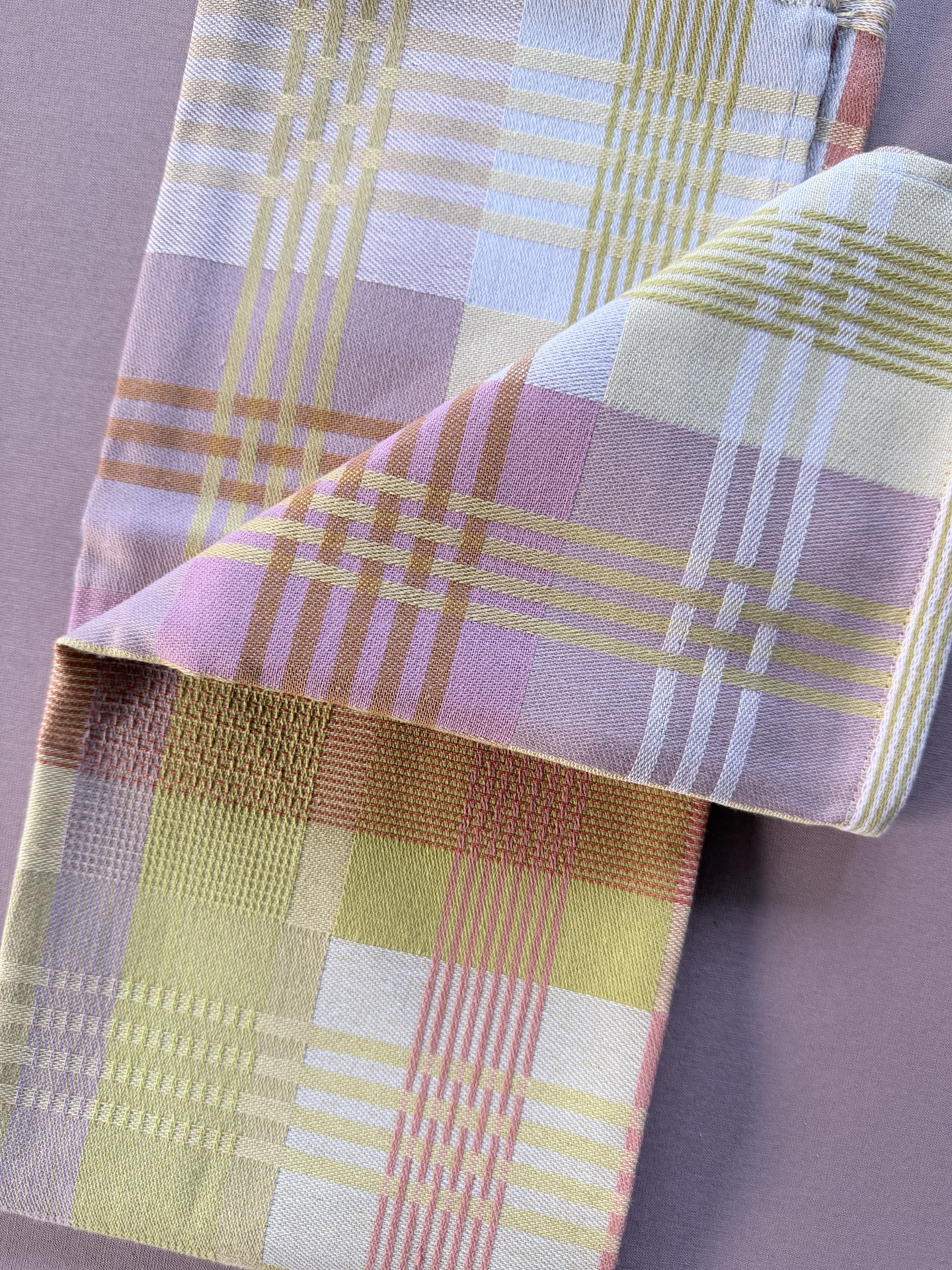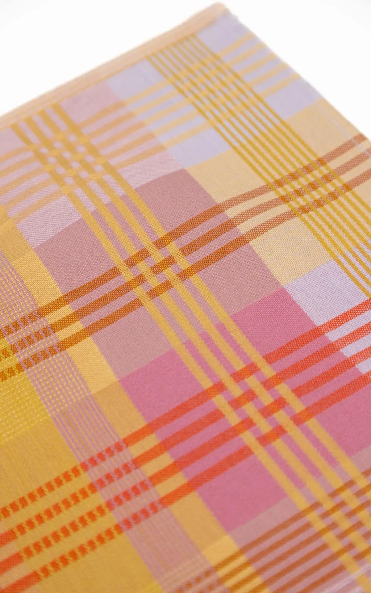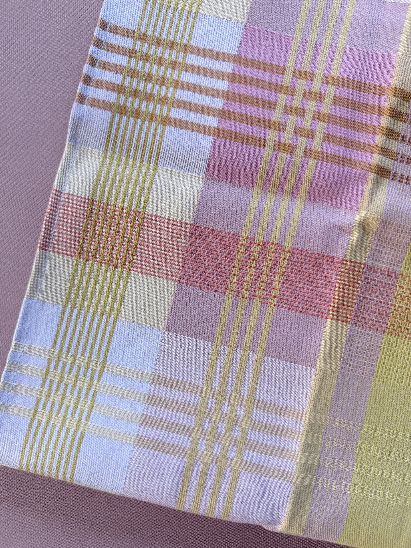 Viskestykket har et skønt ternet og stribet design, som dannes når de mange forskellige farvede tråde væves over hinanden – et design som er overraskende, harmonisk og helt specielt.