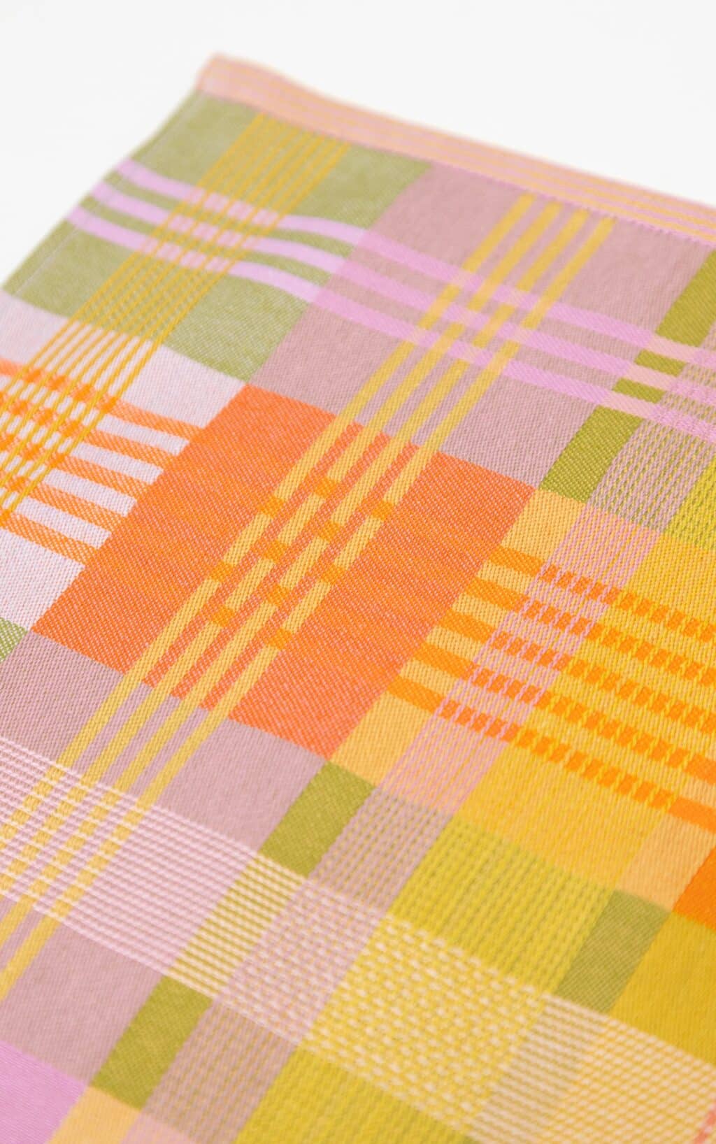 Viskestykket har et skønt ternet og stribet design, som dannes når de mange forskellige farvede tråde væves over hinanden – et design som er overraskende, harmonisk og helt specielt.