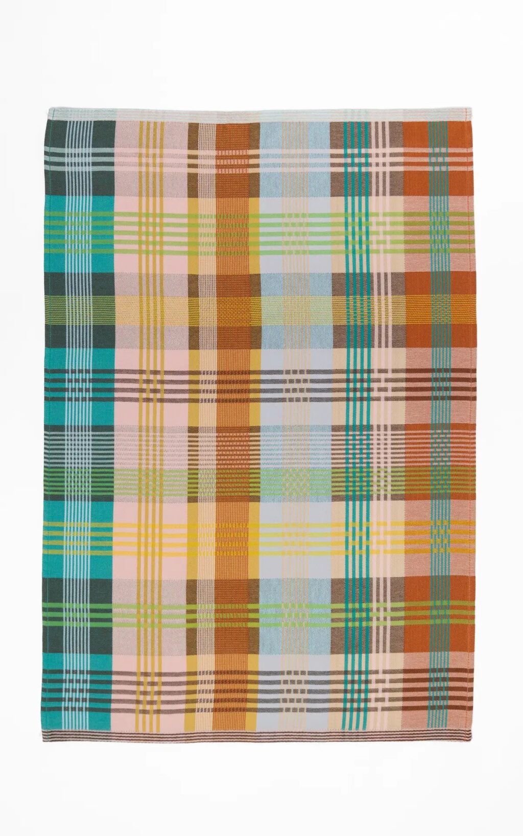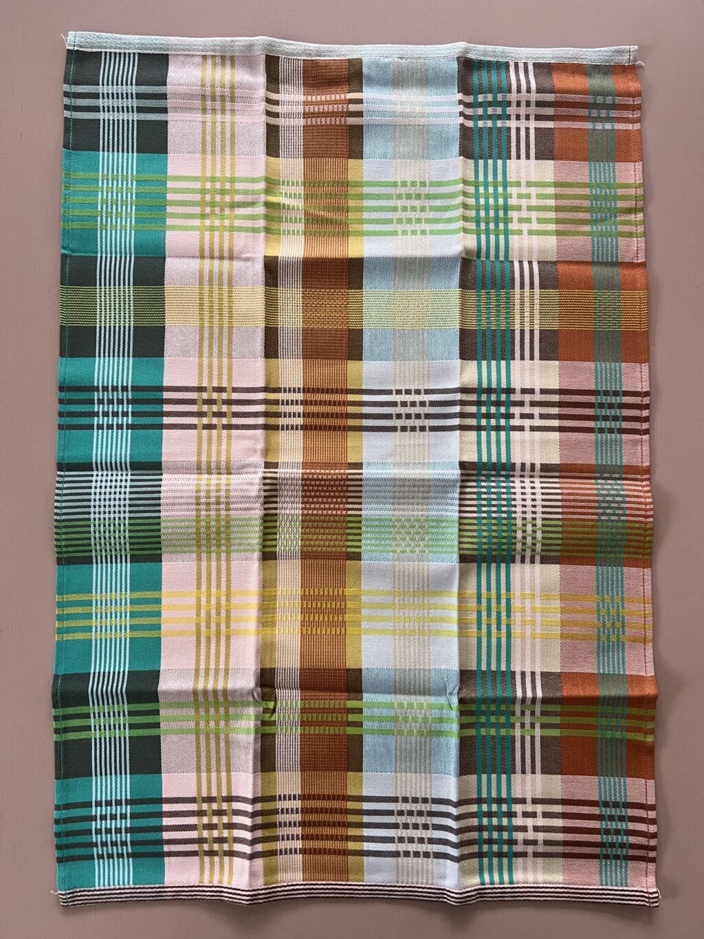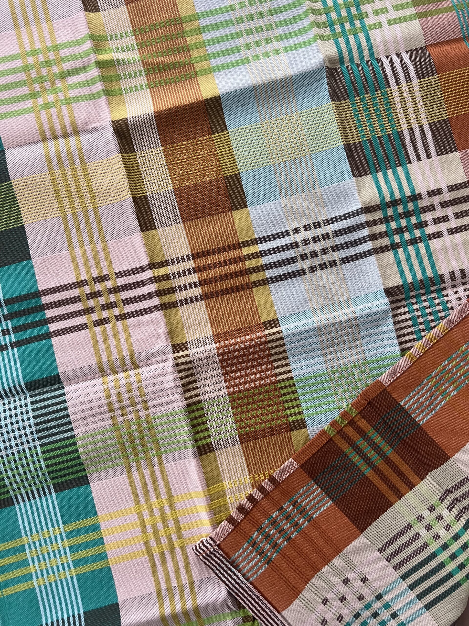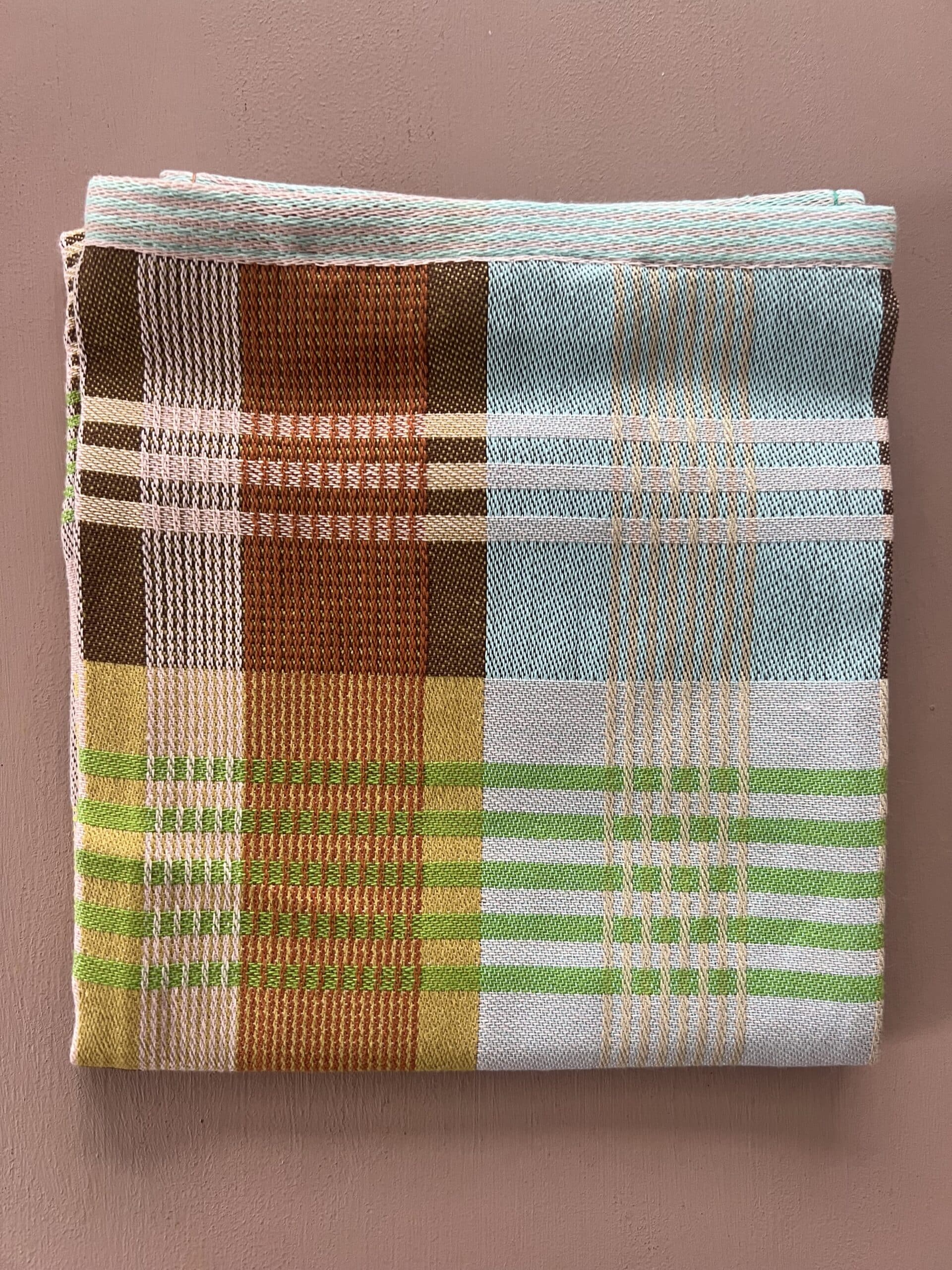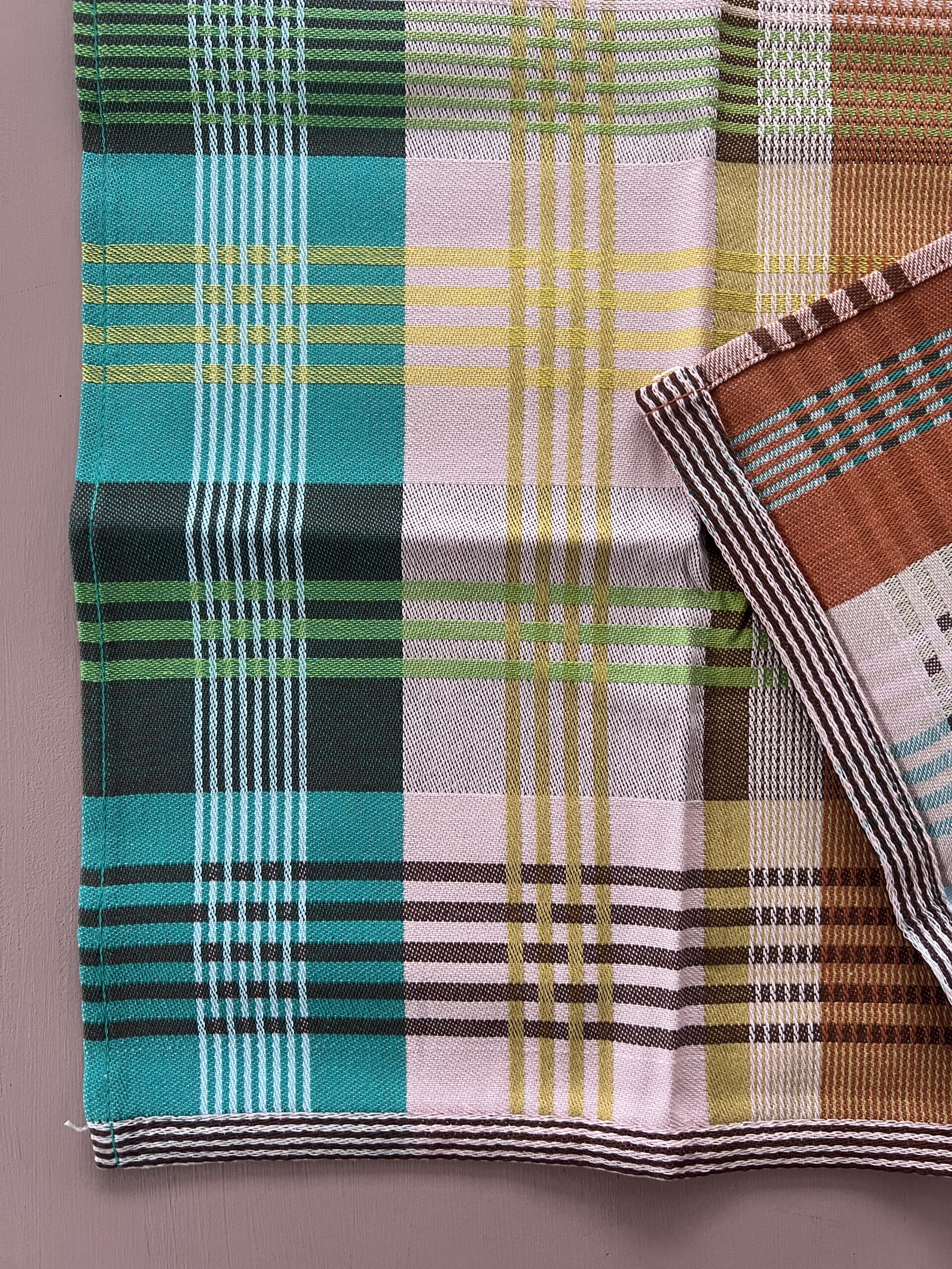 Viskestykket har et skønt ternet og stribet design, som dannes når de mange forskellige farvede tråde væves over hinanden – et design som er overraskende, harmonisk og helt specielt.