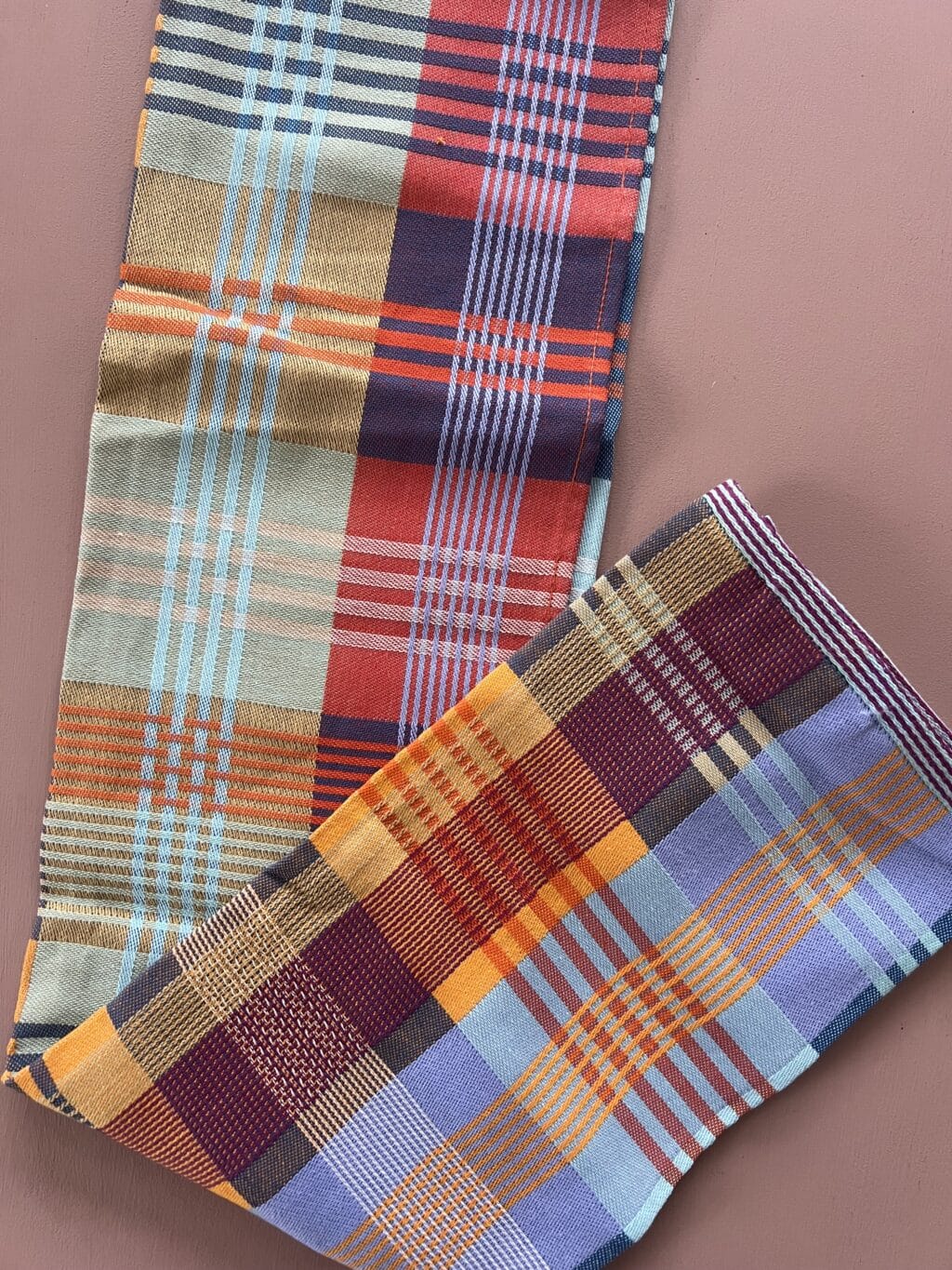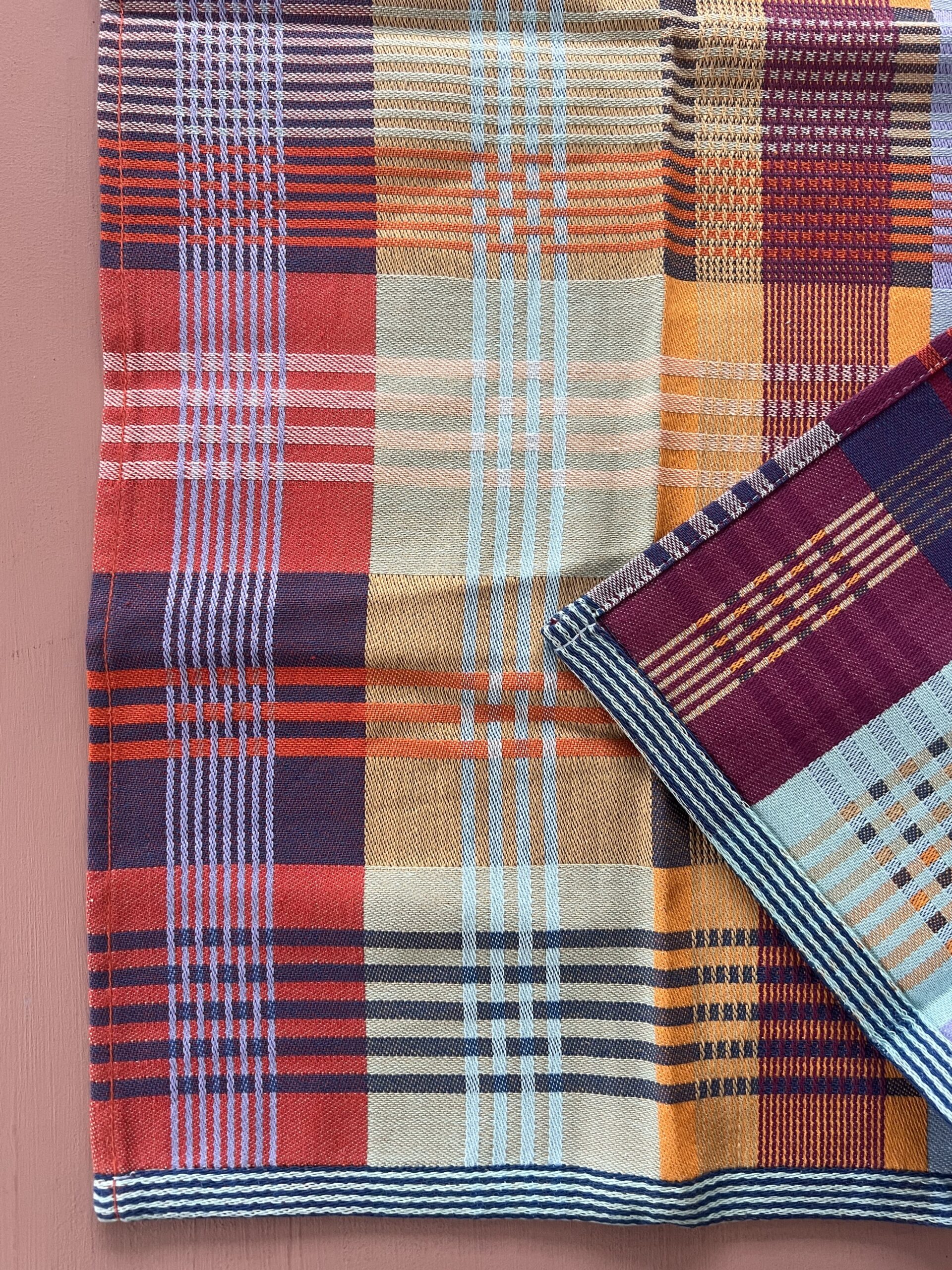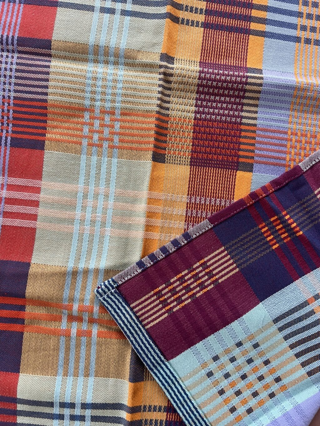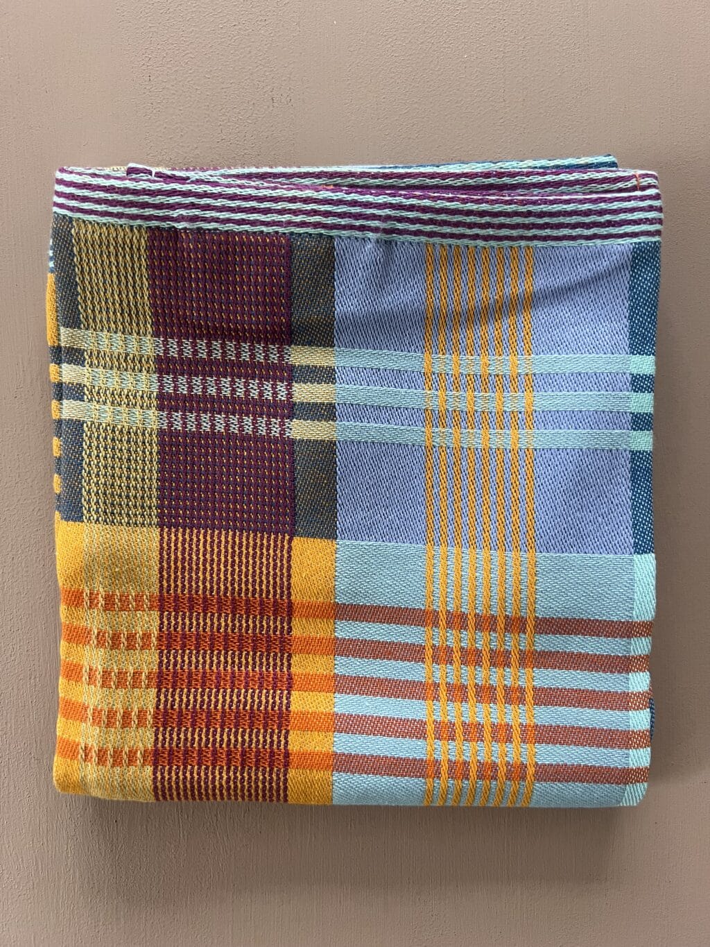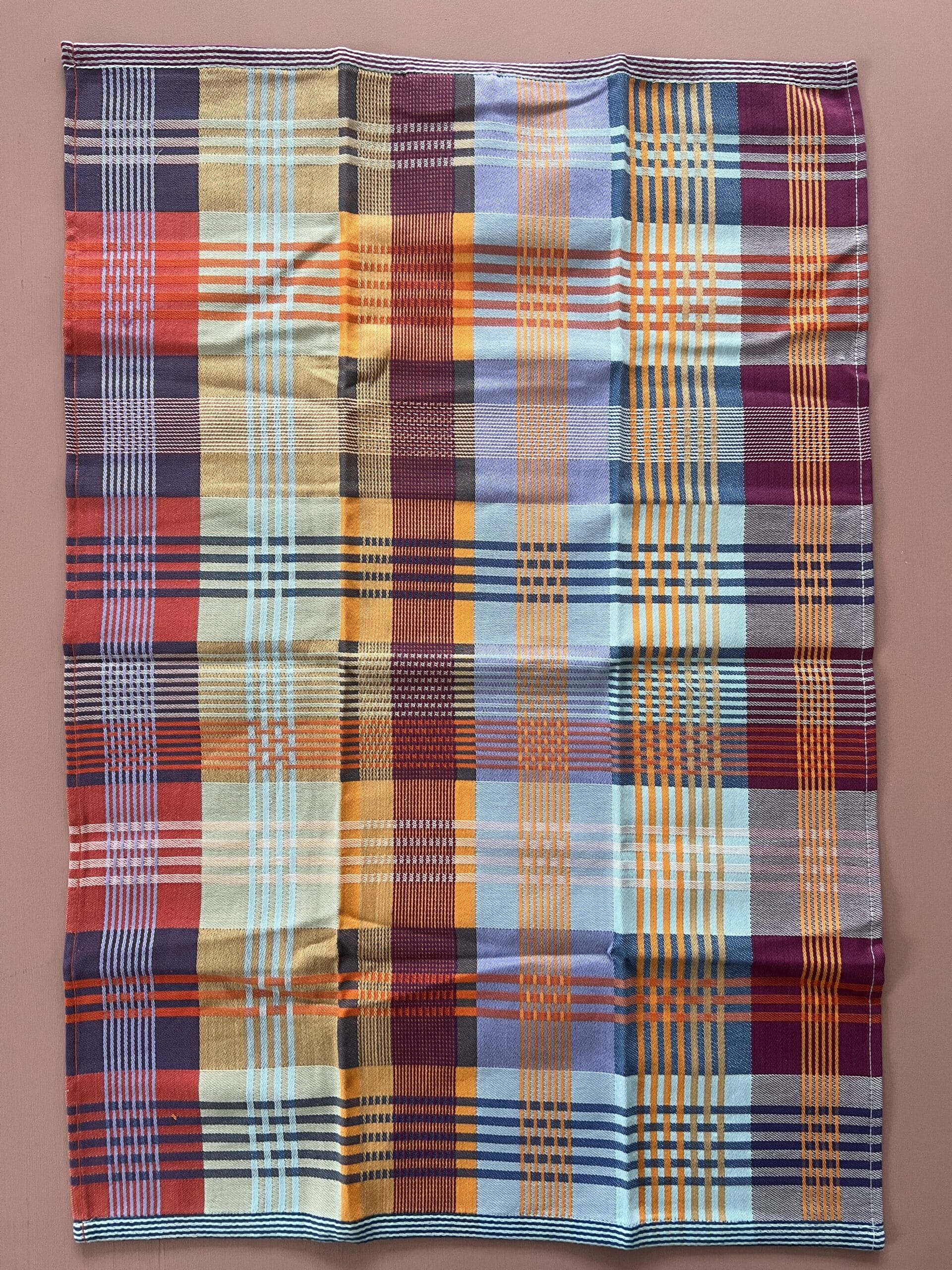 Viskestykket har et skønt ternet og stribet design, som dannes når de mange forskellige farvede tråde væves over hinanden – et design som er overraskende, harmonisk og helt specielt.