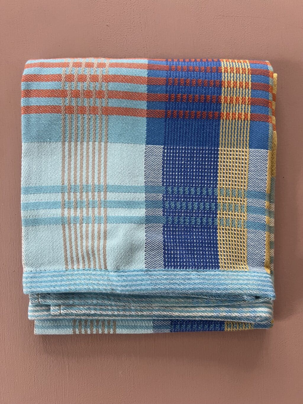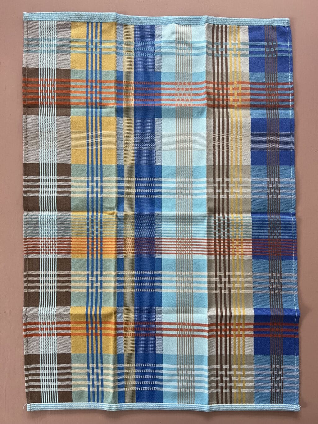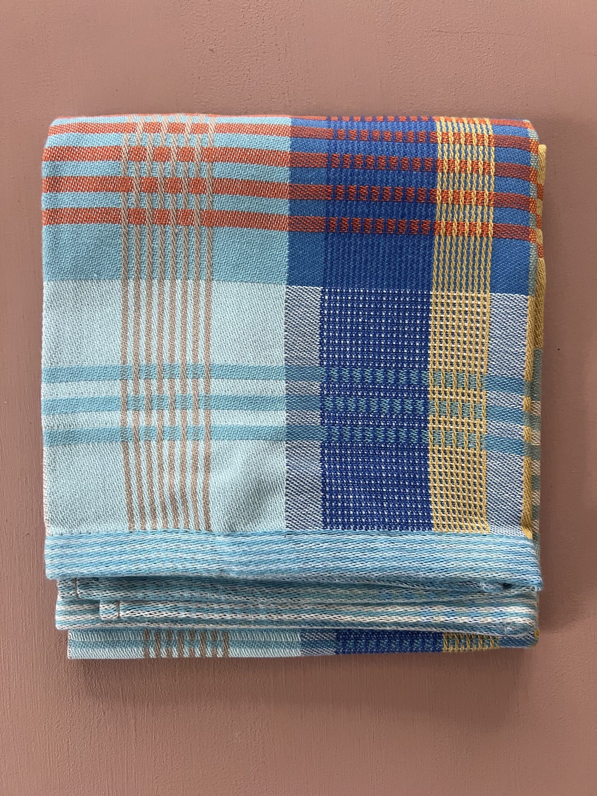 Viskestykket har et skønt ternet og stribet design, som dannes når de mange forskellige farvede tråde væves over hinanden – et design som er overraskende, harmonisk og helt specielt.