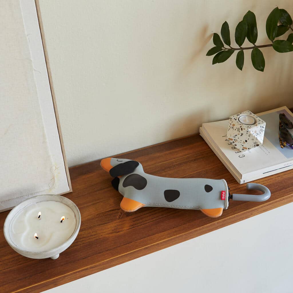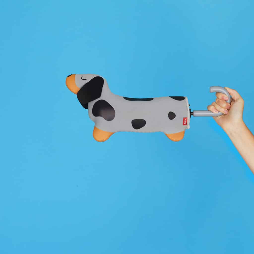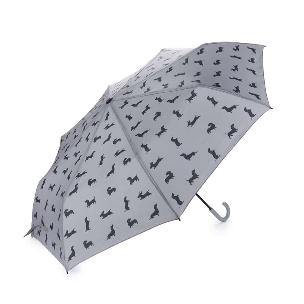 Hold dig tør under denne alt for skønne paraply med hundeprint og når den er foldet sammen og er i sit omslag, så ligner det en grå gravhund.